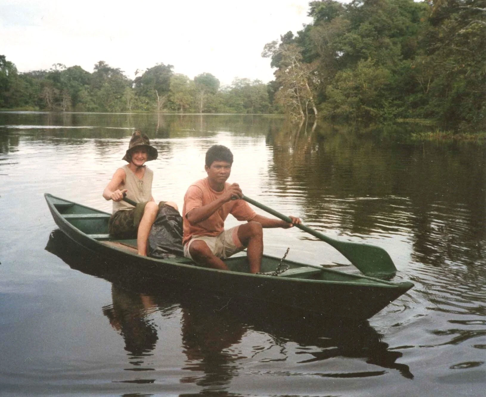 Jenevora with guide Tito at the delta of Japurá and Solimões rivers, Mamirauá